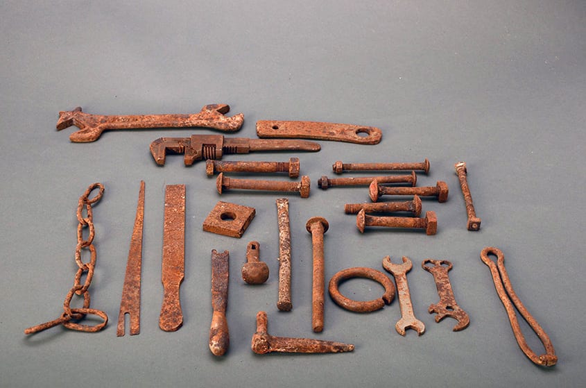 I am interested in the residue of lives lived and what happens to objects left behind. I am exploring this through found domestic and farm objects from a country farm house that are experiencing decay. I feel it is important to retrieve and record these objects before they become obsolete and in some way extend their lives. I intend for elements of the work to connect to the real lives of people whilst hinting at loss and memory. Retaining their physical, and functional identity, together these abandoned objects form an artistic assemblage.