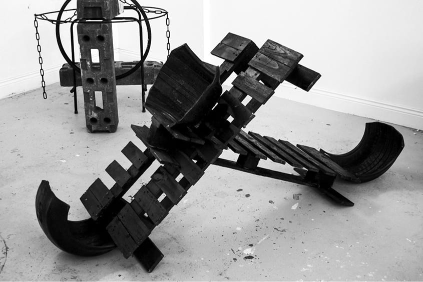 I take objects that have an intended function and repurpose them purely for their form. This process nullifies the objects original purpose. The objects I use are waste. Waste has no value and no practical use.