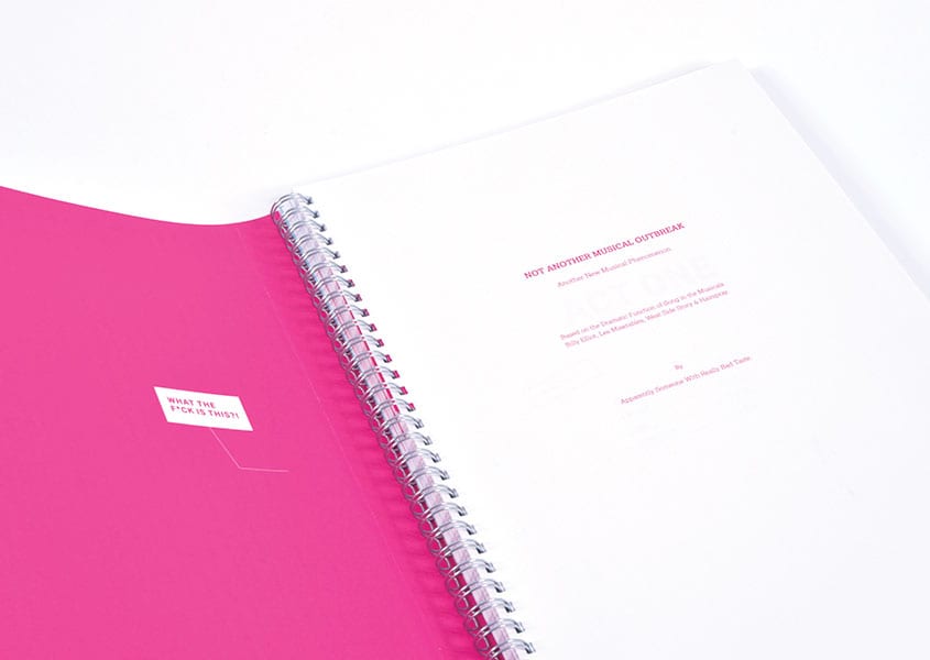 This project provides an insight into the dramatic functions of song types in musical theatre. Four musicals, Billy Elliot, Les Misérables, West Side Story and Hairspray are chosen to demonstrate how characters are not just singing for the sake of it but have a reasoning behind breaking out into song in the middle of a sentence! The format of a musical script is considered using elements of type, lines, sound cues and structure using an Act One and Act Two. This also includes a humourous secondary voice throughout to remind people of their original misconceptions and contemplate if it is more than just a musical outbreak.