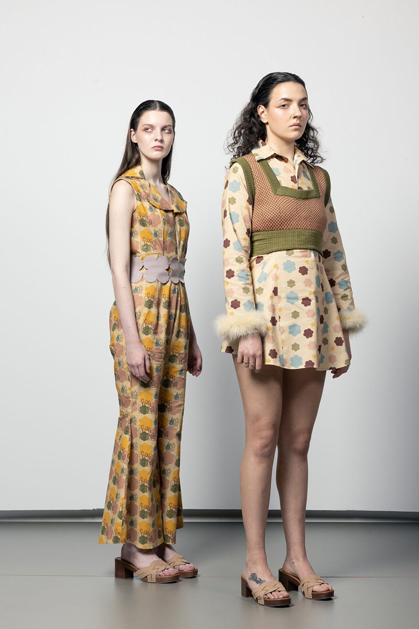 This collection was inspired by pictures of my Mams childhood in rural 1970’s Ireland. Before I began my degree, my nan gave me a good luck card with the words ‘these will be the best years of your life, enjoy but stay grounded’ scribbled on it. My motifs and prints throughout my collection have been developed from my mam’s pictures and from my nan’s handwriting.