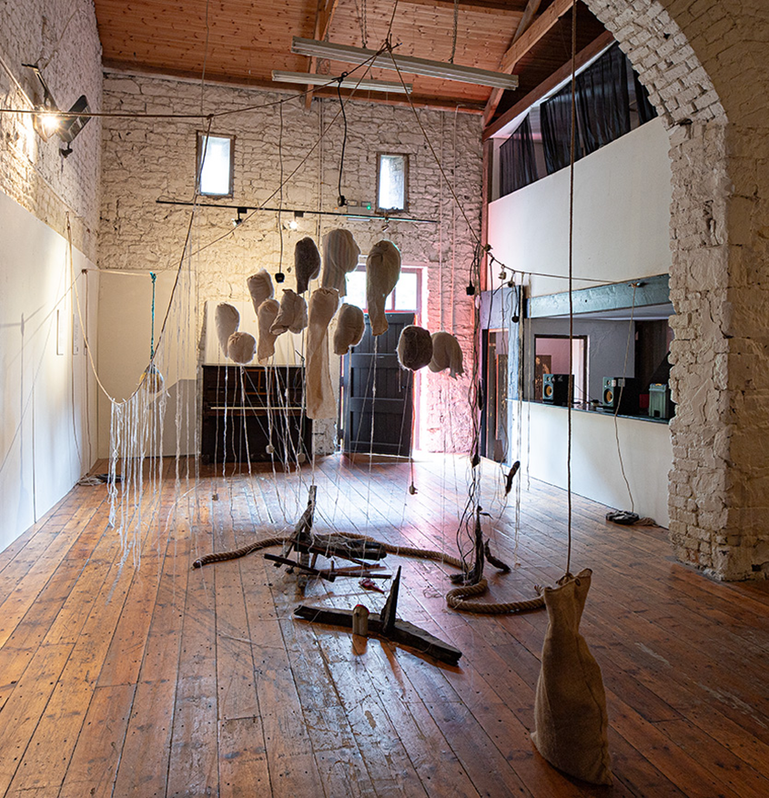 Ann’s work celebrates joyous resistances such as the phenomena of “lilting” of “gob music” which became popular when musical instruments were banned in Ireland in the 1600’s. The idea of resisting oppressions with joy. The process of becoming unbound and unwound.