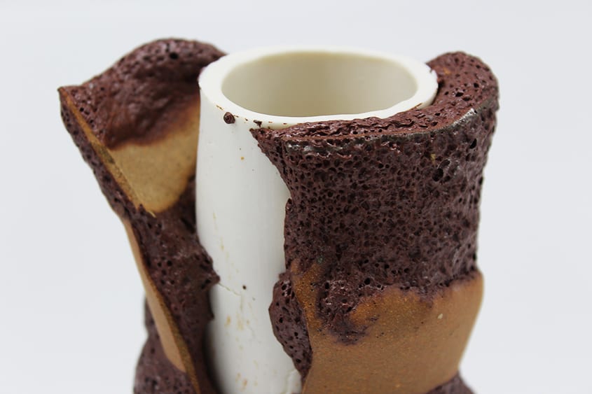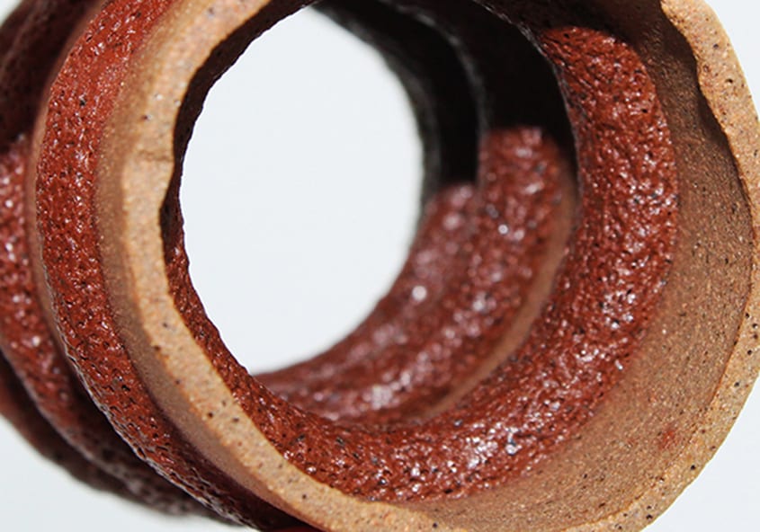 I source clay from my locality. Muck, mud, dirt and stone, these are processed – a high labour activity that helps to embed a sense of place through materials. The relationships between materials and additions create a dialogue within the pieces, and develop a conceptual basis for this technical work. These additions change in the kiln giving a serendipitous reaction to represent the lack of control over the emotional relationship we have to our home-place.