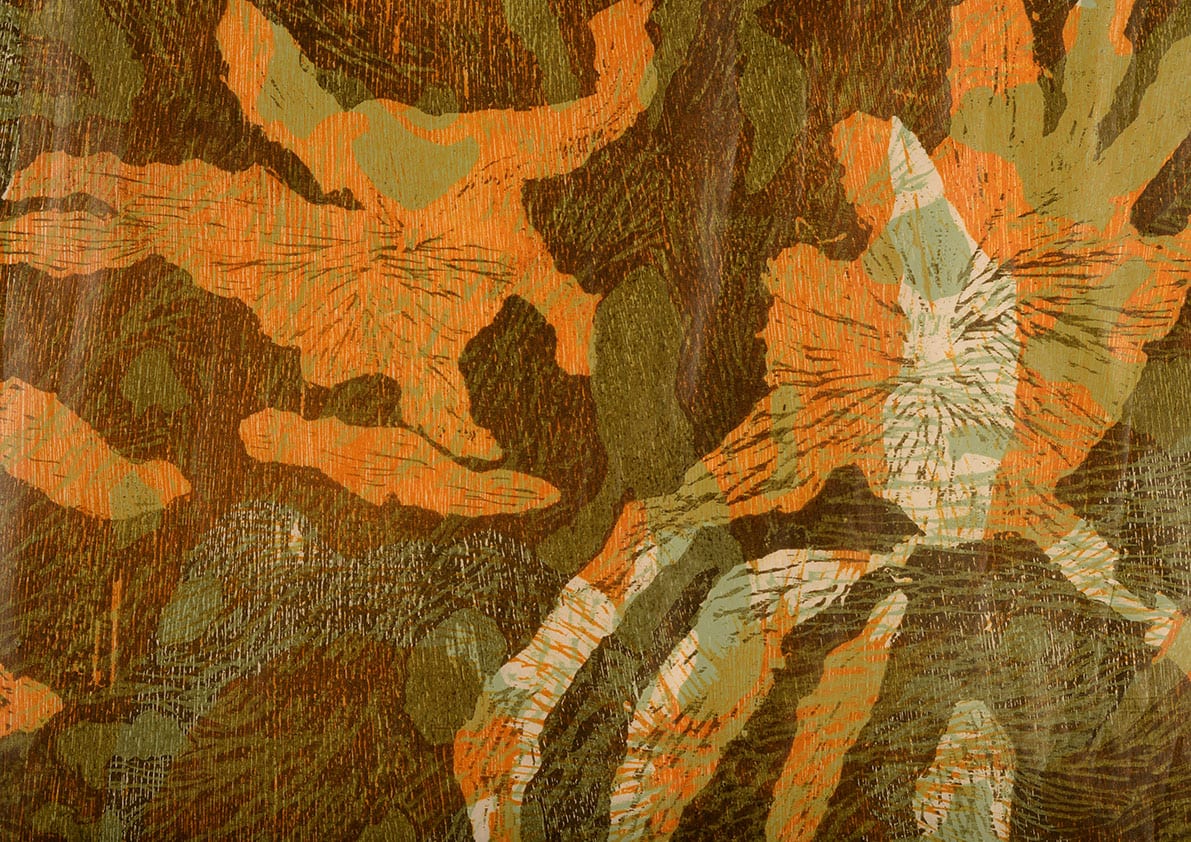 Anne uses macro- photography in conjunction with traditional woodblock process to explore the hidden aspects of nature. The materials she uses in her processes are organic resources of the environment, which connects with her exploration of the details in the natural world.