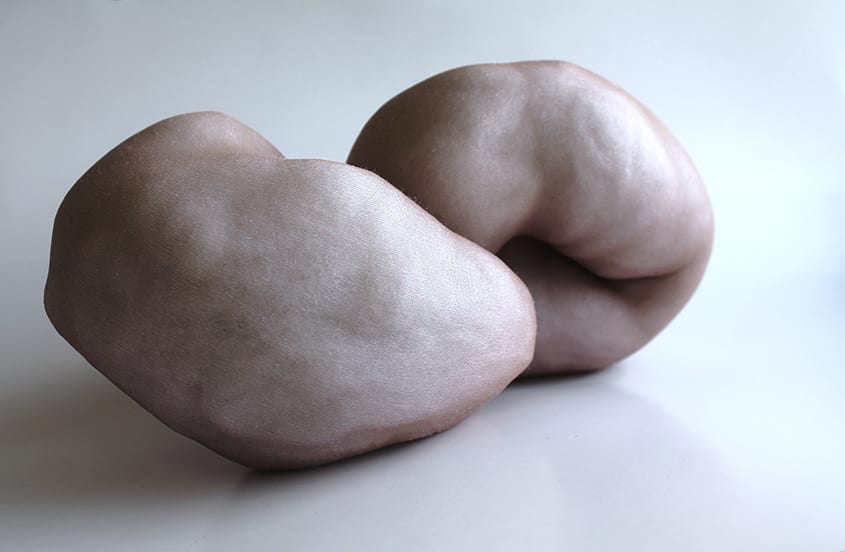 Despite the biomorphic qualities of the work, these forms are not to be misconstrued as mutilations or contortions of the human body. They are original characters that imitate humane features like skin tone and vague spherical structures, as manipulation of the human form is what provokes the most controversial judgements. Combined with the visual and physical elements of my work is a collection of vocabulary that is suggestive of such judgments e.g. alien, foreign, and anomalous. These words intend to evoke a sense of discomfort and self-reflection.