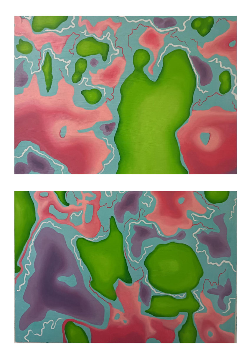 Ashleigh Boyd is a Limerick based painter, printmaker and photographer currently exploring psychological concepts such as the psychology of memory and subconscious perceptions of reality. Her body of work ‘Appropriation of a Memory’ investigates the memories of her mothers life. Centred around found images of Ashleigh’s mother during several different time periods of her life, the work combines abstract and figurative painting techniques with digital and physical editing. Through these techniques Ashleigh inserts herself into reappropriated photographic memories. Working with ideas of destruction and reconstruction, blurring, and omitting; Ashleigh’s work provides an insight not only into aspects of subconscious exploration but also the multi-faceted and complicated ideas of subjectivity, womanhood, intimacy and femininity. In her practice, Ashleigh threads the thin line between non-representative and figurative representations of the subject matter in order to completely round out her thought process artistically. Purposefully introducing these two elements together allows both the Artist and the viewer of the work to combine the visual understanding of figurative aspects and the natural curiosity of viewing something that cannot be understood and needs to rely more on the senses and the subconscious