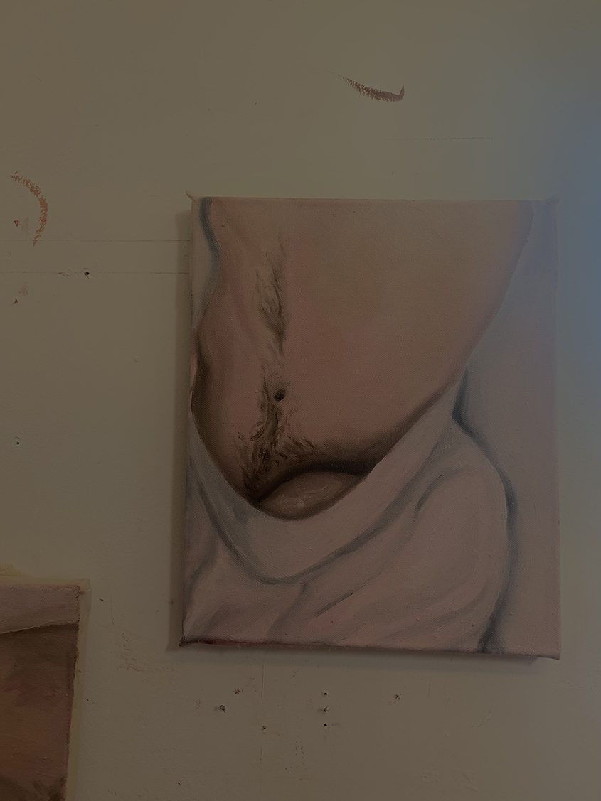 Most of my work consists of naked and queer men. I am primarily using myself as a reference my paintings have themes of self love and intimacy as the moments that I am painting from are from a private moment in someone’s life. My subject matter include nude bodies, sexual tension, masculine and feminine seductiveness and passionate romance