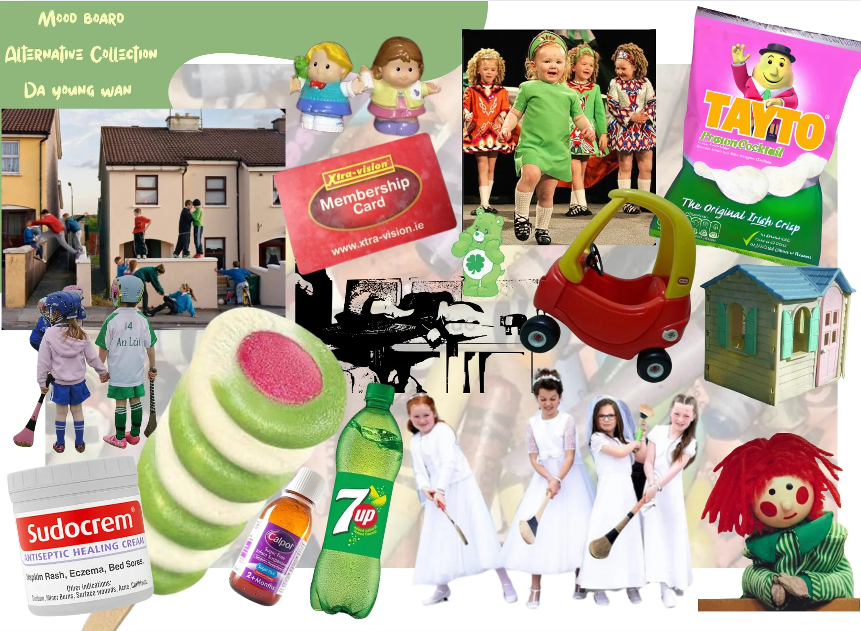 This project is an alternative extension of my graduate fashion collection, reimagined through the lens of childhood. Inspired by the experience of growing up in Ireland during the 2000s, this collection explores identity, nostalgia, and self-expression from a child’s perspective. Using fashion as a tool for storytelling, I reinterpret my original concept to create a playful, mixed-gender children’s collection that reflects the vibrant yet often overlooked emotional landscape of Irish youth culture at the time.