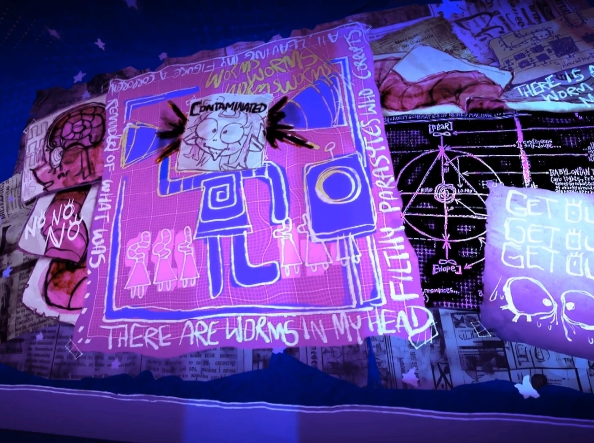 Follow Deimos, the hungry inventor, who must traverse the inside of her own mind to track down the source of her sudden wormy hallucinations. These horrors threaten the fabric of her mind, and her appetite.