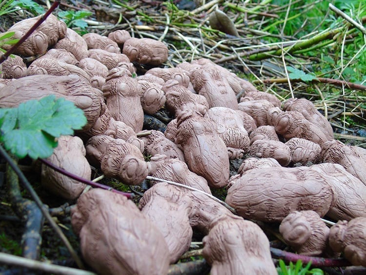 My work explores these concerns through three different means. Detailed drawings emphasise the beauty of bumblebees, often unseen because of their minuscule size. Seed bombs are an incitement to change. An invitation to plant – whole or scattered – and so recreating areas for these pollinators to feed. Finally, the installation brings attention to the detail and beauty of form that is created when copious individual bees work together as a single unit in the nest environment.