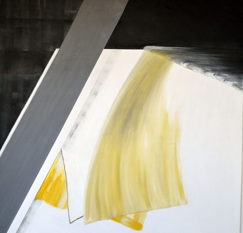 Beth Nagle’s work explores the intricate links between life and death, light and darkness. She questions the space between the ‘seen’ and ‘the unseen’. This delicate theme is addressed by combining the real and the imagined, by using the representational medium of photography, in real time, to create ideas for her esoteric, abstract paintings. Inspiration is derived from within and outside of her studio space, finding beauty in the banality of her architectural environment and how it is transformed by the effect that the light of the sun has and how it creates varied and interesting shapes throughout the day.