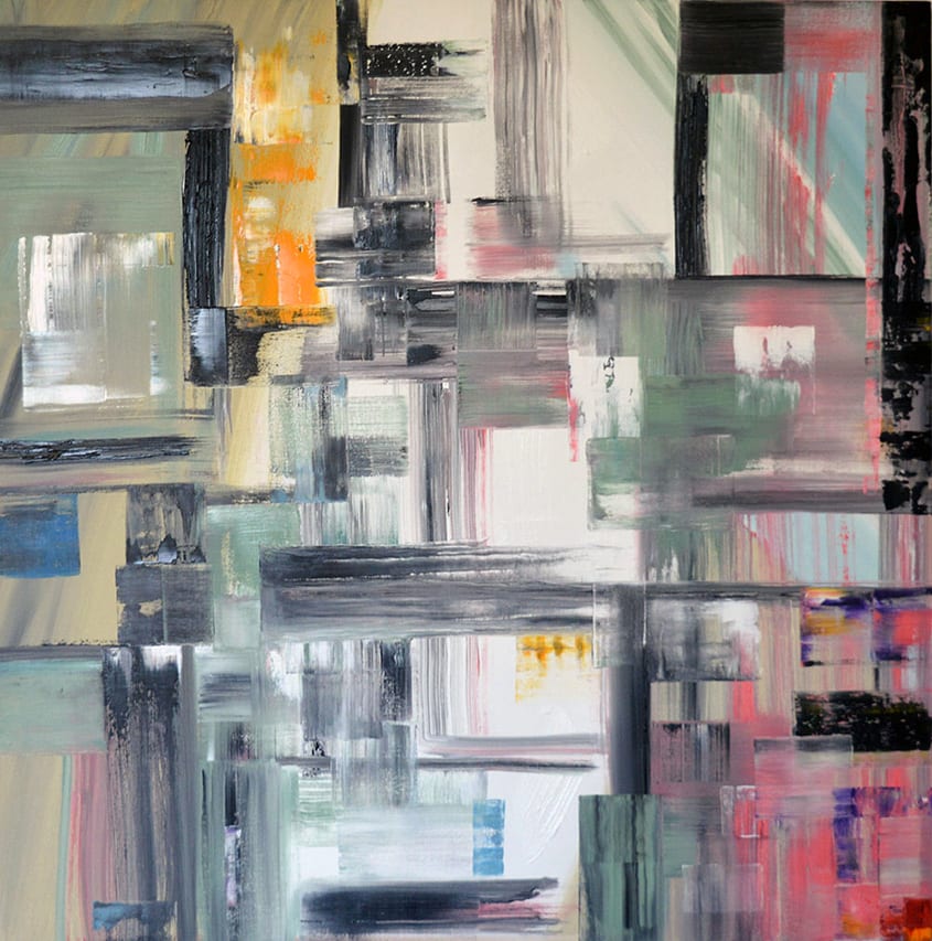 Her work consists of hard-edged geometric structures to illustrate the material world and portrays the unknown dimension of infinity through mystical imagery. The absence of the figure and the ambiguous nature in her work invites the viewer to enter into their own perceptual journey. We exist in a frenetic world, and beneath it is a stillness. In this stillness there can be found silence which is where Nagle draws much of her inspiration. She also probes into the place of personal consciousness, influenced by her life experience and her interest in music, philosophy and film.