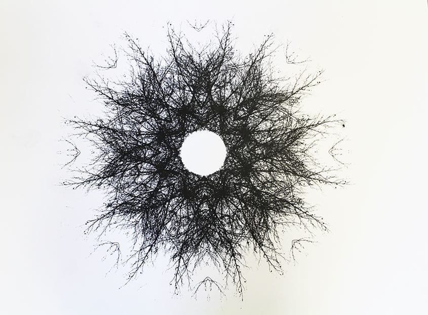 I use the landscape in association with the mother to create my work. I use techniques such as layering of screen-prints amongst photography to create ‘portal’ like, internal spaces centring as the focal point of my pieces. I make reference to the circle which is symbolic of the womb, life, death and regeneration all of which the mother can be associated with being the giver of all things life.