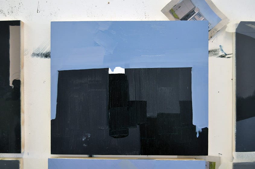 Shannon is the touchstone for my work especially the Drumgeely apartment complex and the Shannon Free Zone, with their residential and commercial buildings. The network of officious, sober buildings and boardrooms hint at potential social development. Ambition and aspiration is translated through glass and concrete in a simple modernist design.