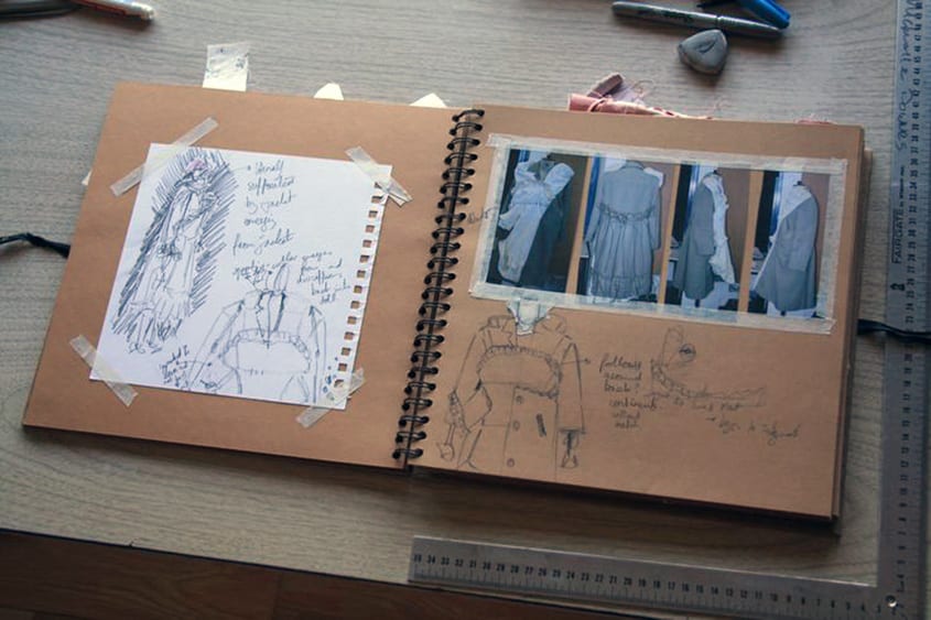 As the girl struggles with the inevitable separation, garments begin to separate and seams begin to open, revealing her diary entries in openwork embroidery.