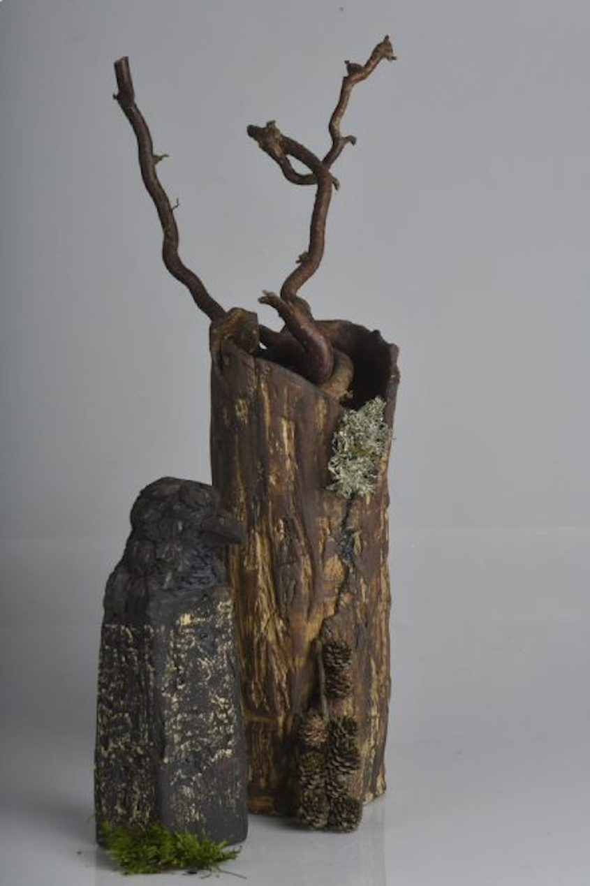 My sculptural pieces have been prompted by several influences. One is my belief that many of us have lost our natural sense of home. My pieces have become an emotional landscape for me and reflect the human connection with nature.