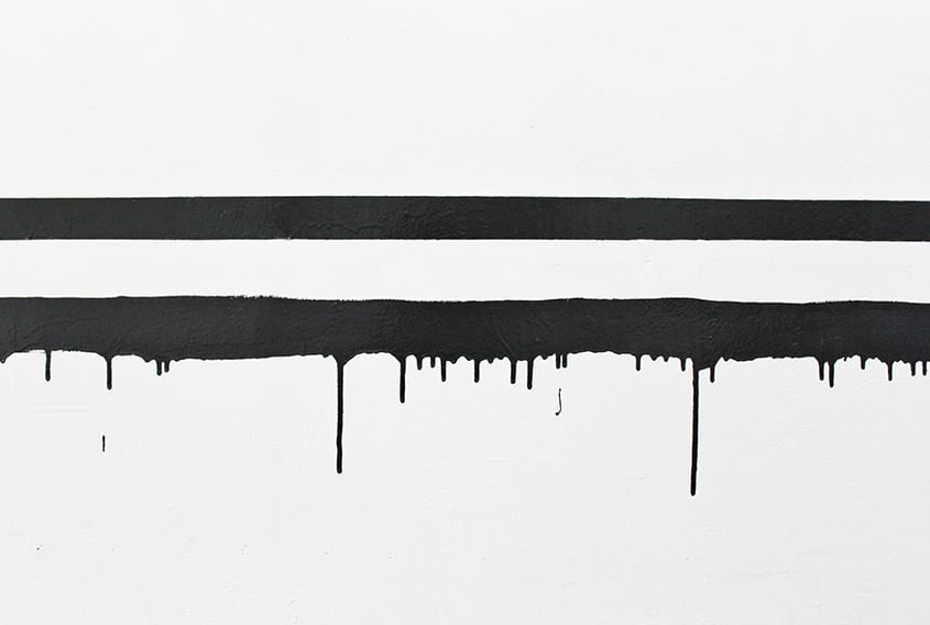 is scrutinized through this practice, with the aim of developing an intrinsic language with which to analyze the contemporary rhetoric surrounding painting, challenging archetypes in terms of this medium. I am interested in painting’s changing language and the problems and solutions which occur as a result of this. Duality and juxtaposition are at the core of the practice. This work pertains to the curious, playful and questioning. I employ subtle actions to allow a dialogue to form. Actions such as cramming a huge building, so to speak, into a minute canvas, painting from wall to support, the adjacent positioning of block colours and the adjacent positioning of lines or brush marks comprise the playful, questioning conceptual mechanisms at work. These are the juxtapositions that are at play within my practice. The positioning of painting within architectural space is also a concern regarding this work. I am interested in how architectural space affects a painting and conversely how painting affects an architectural space. This body of work subtly challenges unfolding conversations within the terms of this genre; maintaining a commitment to painting while questioning its position.