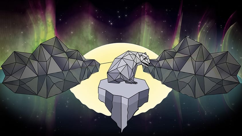 The projection installation consists of two sections, first being a slow relaxed scene from the north pole, filled with icebergs, a polar bear, shooting stars and a northern lights display. This then transitions into a more upbeat faster passed scene with an owl as the main character.