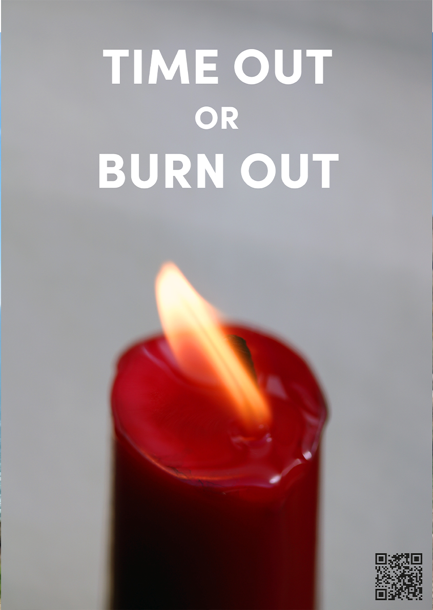 Alongside the video, a poster was created to emphasize that burnout is not merely about taking breaks but is a significant life choice regarding how one constructs their life. The campaign aims to prompt individuals to reflect on their lives and make conscious choices: take a break or risk burnout.