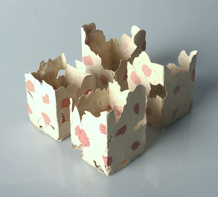 My work explores the pressure to conform to a manipulated ideal of beauty. Reducing perfection to a universal standard, I make flowers using an identical making process. Drawing on the tradition of hand-made flowers within ceramic industry, I explore the subtle variations that emerge within this repetitive process and that make each individual flower uniquely beautiful.