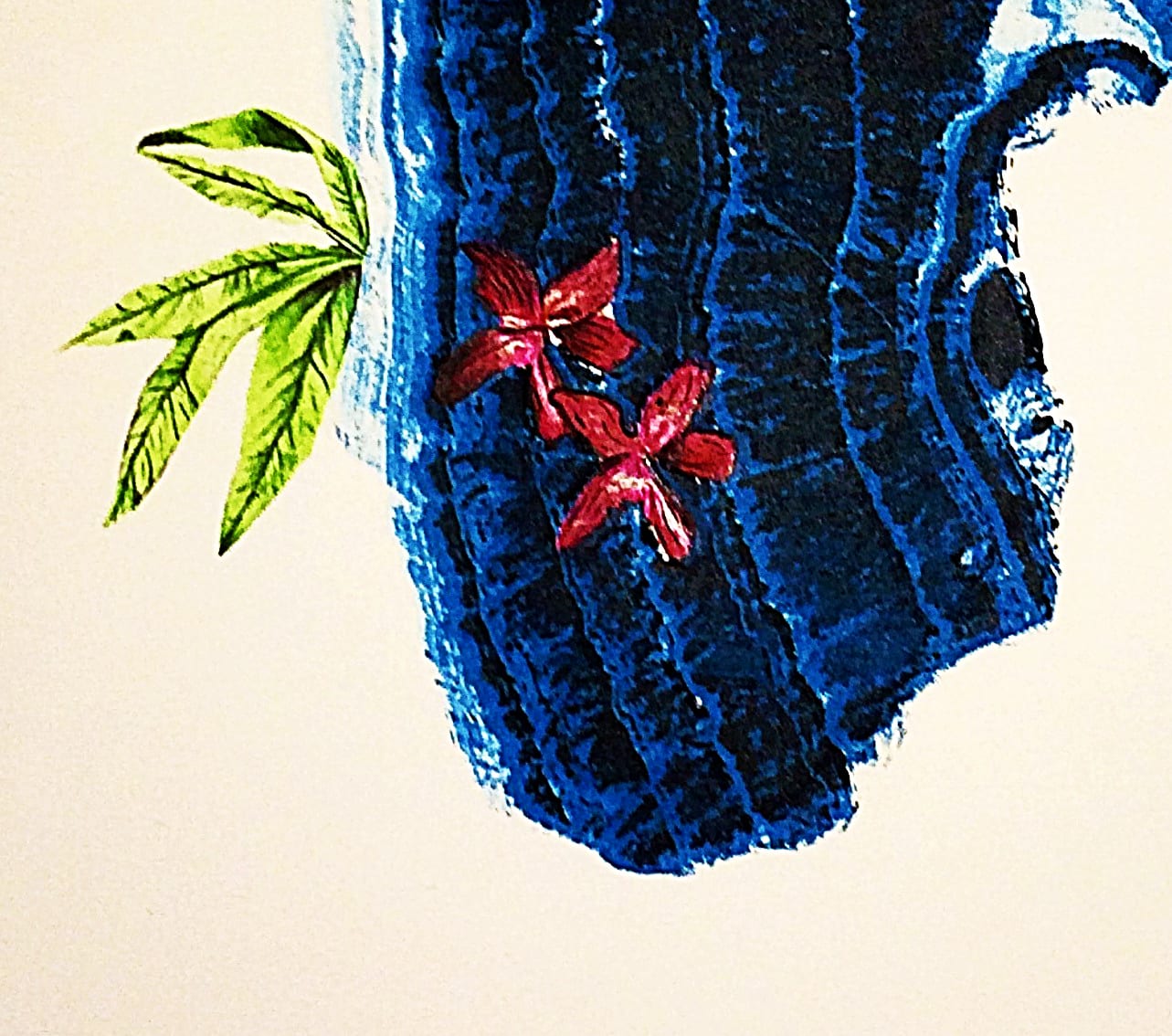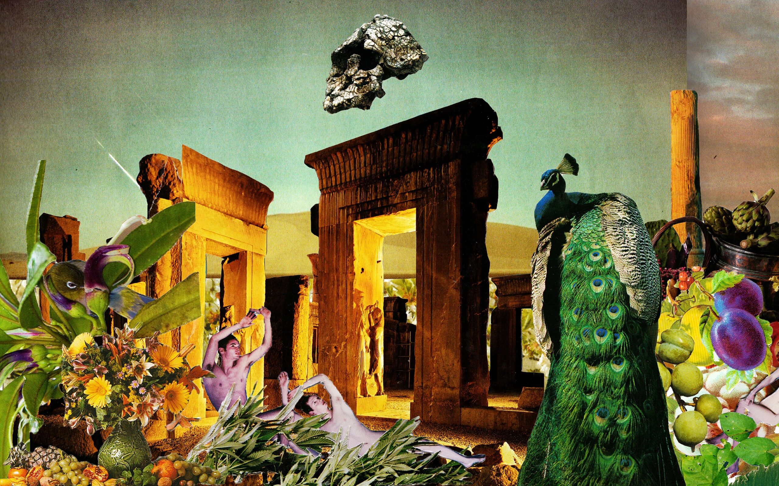 Using imagery of paradise and pastoral settings to represent his own psyche, Christopher constructs these landscapes to express the sexual confidence he has found, and the effect aggressive masculinity has on him. Christopher conveys this through the guise of Greek mythology and antiquity. The use of bird motifs represents Fisherian Runaway in men. Fisherian Runaway is a sexual selection mechanism found in birds to account for the evolution of exaggerated male ornamentation by persistent female choice. This sexual mechanism is explored through visuals to express the performative habits of masculinity and how it influences male behaviour.