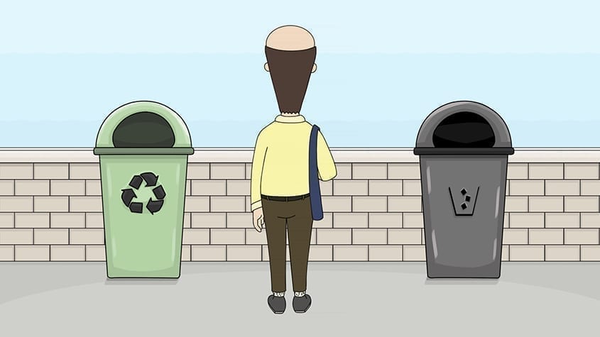 Just as we think his journey has ended, we start to rewind back through time, bringing us back to when he first got ordered from the café. Instead of choosing the disposable cup which the customer first had, he whips out his re-usable coffee cup. As a result, the disposable coffee cup avoids a miserable future thanks to the customer deciding on a more sustainable option.