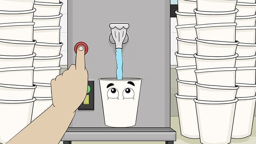 REWIND is an animated short about the journey of a single use take-away coffee cup that experiences a series of unfortunate events once he leaves the comforts of his café. Once the cup has served its sole purpose in life – which is to hold a cup of coffee, he is disposed of. After being mistaken for a recyclable material he ends up in a recycling centre but is quickly picked out by a worker and tossed into a pile that will be sent to landfill.