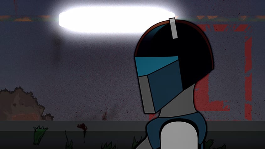 Psych;Geist is a 2D animated short with elements of pixel art. This animated short details the events of the Psych;Geist, a violent deathmatch that is broadcast around the world, involving four participants, ‘chancers’. The focus is on a specific ‘chancer’ entered into Psych;Geist called Sam, and her experience taking part in the deathmatch. Its set with the backdrop of a post-Global Warming America, ravaged by climate change, where social status is the most important factor in someone’s survival.