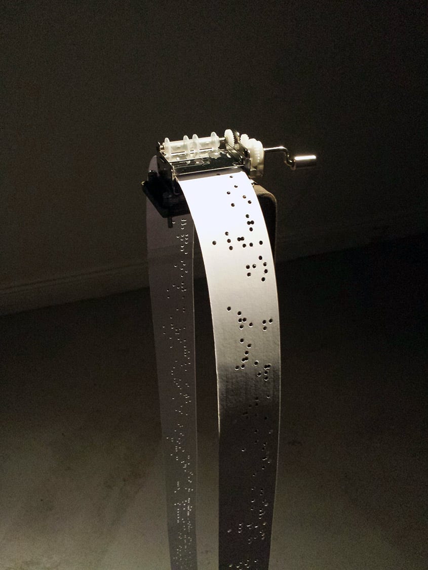 An in depth investigation into the realms of musical and linguistic media broadens the idea of what can be considered to be music or be an equivalent medium for transcription. Exploring the visual and replacing it by factors of musical notation opens up the possibility of the instrument retelling gathered stories in a fragmented and unfinished form.