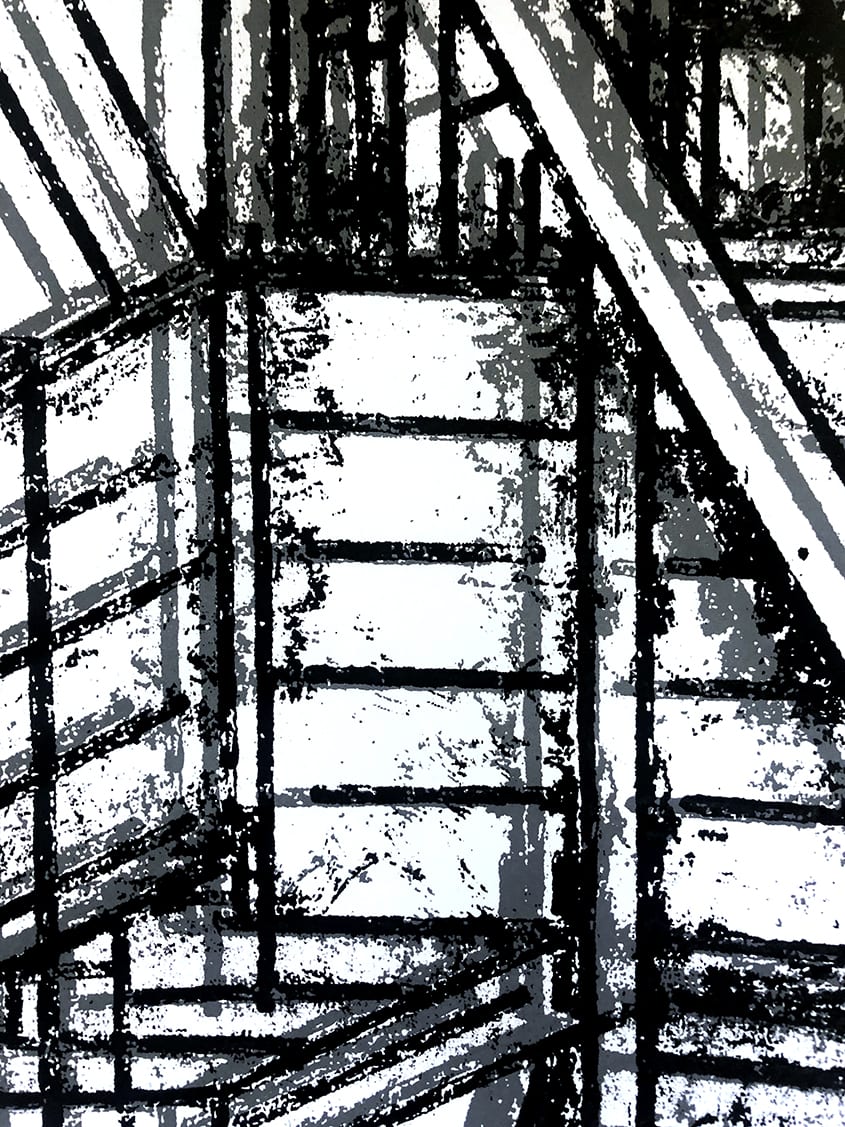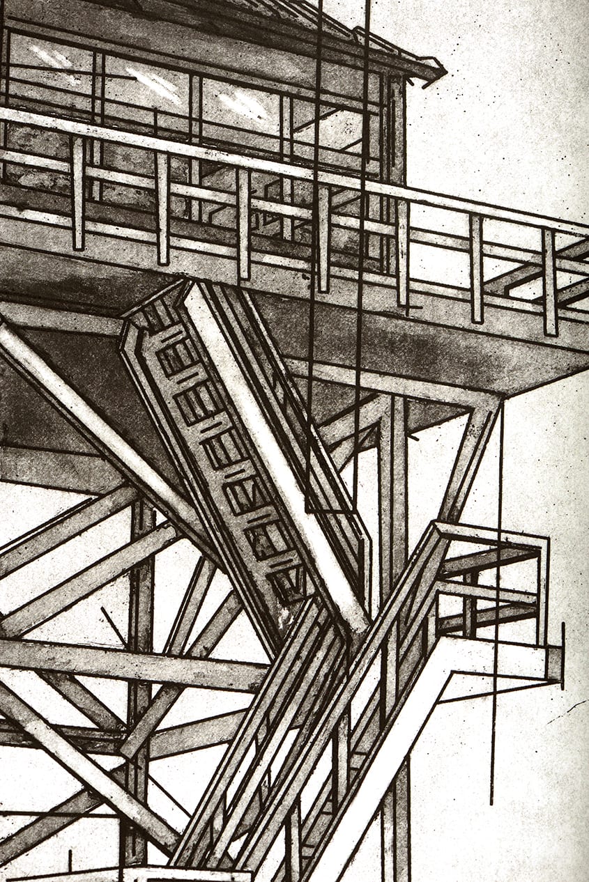Borders are synonymous with state power, sovereignty and national identity. They define both belonging and otherness. In the face of rising nationalism and the growing global refugee crisis, borders across the world are tightening and also unravelling. My work is concerned with the idea of Borders. I witnessed first hand the Mexico border when working in America last summer. This experience led me to read and research around the concept of borders and to develop this body of work. The watchtower became a defining image and symbol of restriction, violence and a lack of freedom. The intricate framework of the watchtower has become a metaphor to explore the idea of boundary, frontier, partition and the dividing line. The repetition of the black line that is seen throughout my work reflects on how a simple line can create so much conflict.