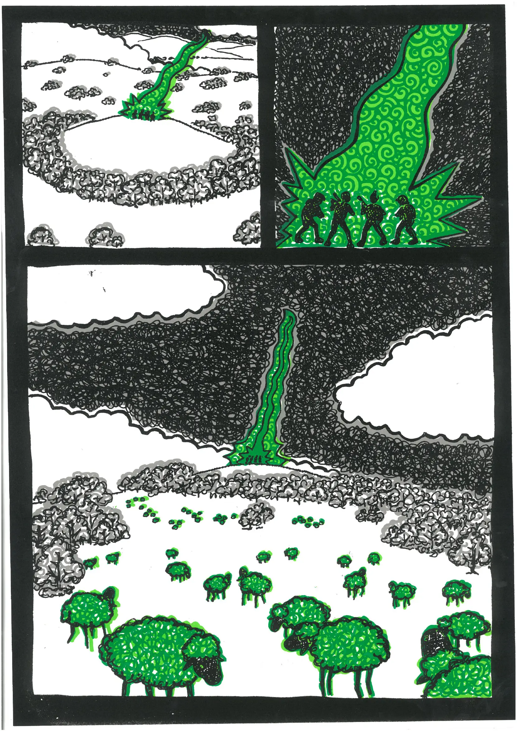 Major Feen’ is a collection of works I made based around the band I play in by the same name. The work I am exhibiting aims to create a visual representation of the time and space that we occupy as a band of brothers making art and memories together, told through stories and illustrations.