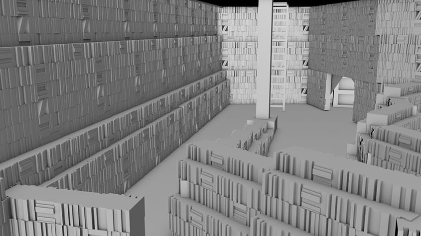 Hoarders is created in a digital environment, digitally built in 3D space. It explores this generated world from a first-person perspective. While traversing each plane the viewer is introduced to the characters as they navigate throughout the set.