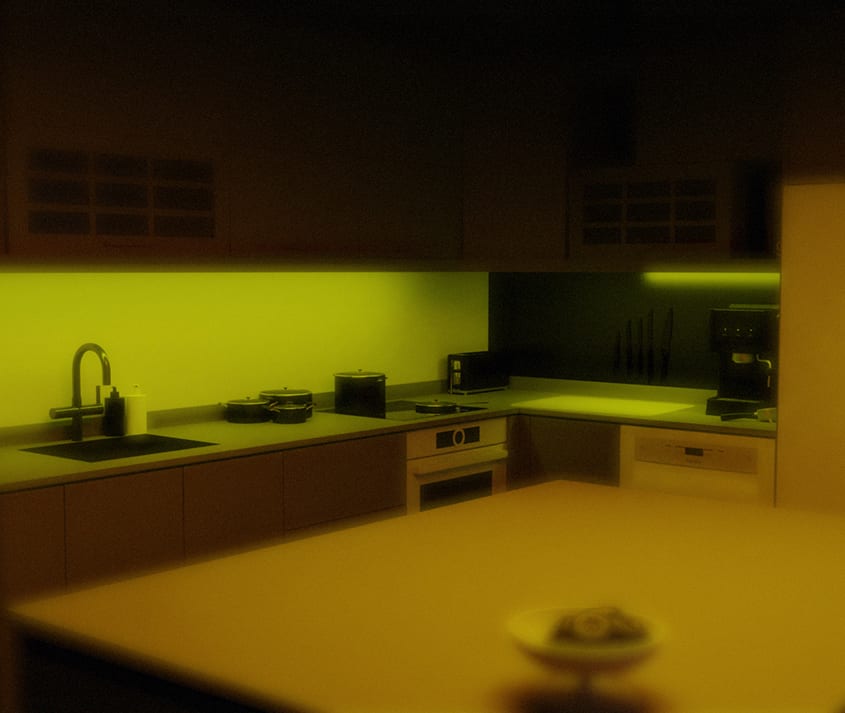 Free Gaff is an animated short which focuses on the contrast between order and chaos. It provides a fly-on-the-wall look into a house left abandoned in the wake of some apocalyptic event. The setting, a sleek, modern, manufactured house interior, contrasts a chaotic apocalyptic event occurring outside, which slowly leaks into the pristine ecosystem of the interior. As things progress, chaos begins to take over, slowly infecting the ordered nature of the scene. Lighting and colour are used heavily as a storytelling device to show the slow transition from order to chaos.