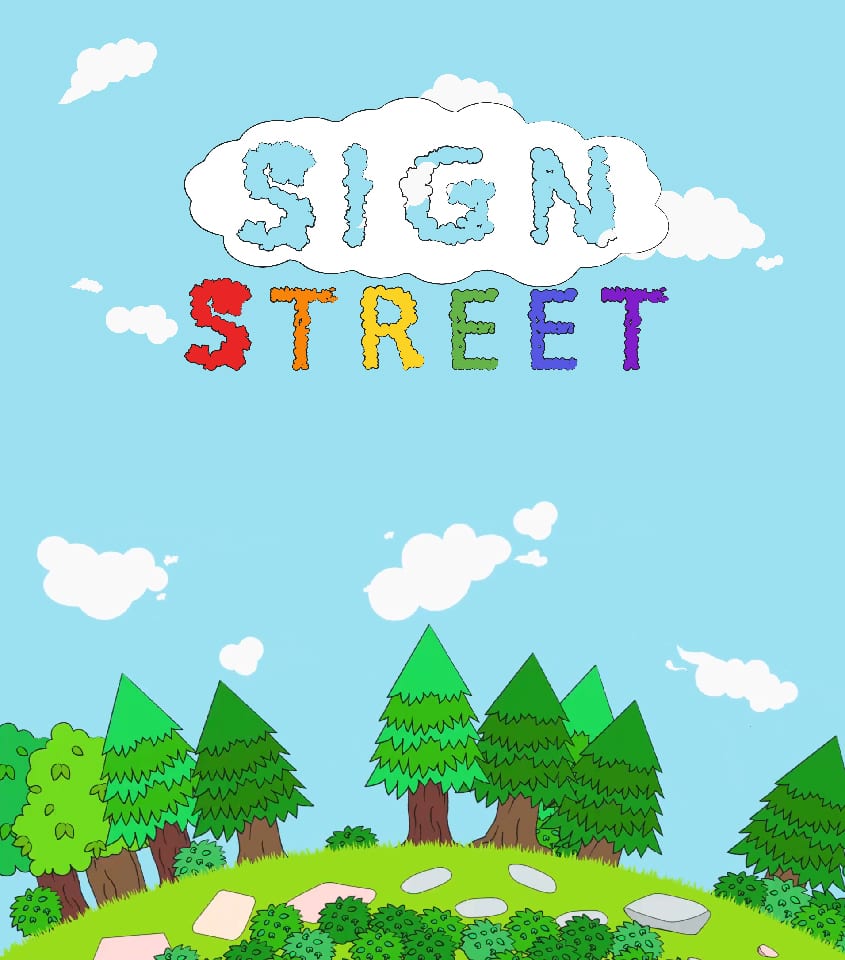 Sign Street centres around the core concept of improving Irish Sign Language education among hearing children and achieves this through its creation and exploration of a vivid and unique world. Filled with a mixed media of characters and environments, Sign Street echoes the diverse population of real life and reinforces the fact that many unique individuals share this world with us. Sign Street is filled with colourful cartoon environments to captivate its young audience and further includes them through viewer engagement. By introducing hearing children at a young age to Irish Sign Language, Sign Street acts upon the very diversity it teaches and creates a bridge between hearing and deaf children by providing the necessary language skills.