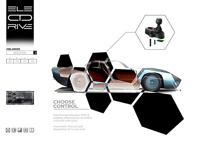 Electdrive is my response to this on behalf of the true drivers of the world. Electdrive is a fictional automaker that maintains all the technology and responsibility of modern cars but also upholds the values of what makes driving a tactile and engaging experience.