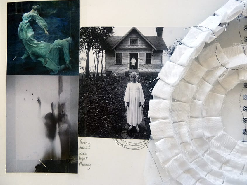 this degree collection drew its inspiration from the different stages of drowning. the conflicts between astonishment and unconsciousness are juxtaposed with the collections’ independent silhouettes and restless tessellate textures. the turmoil ensued in the act is reflected by discordant seams, and muted tones of white and grey depict the suggestion of life cessation. Using fabric manipulation techniques applique and the box pleat pattern used in each piece allows for continuous movement throughout the collection, to mirror wave motion and the reflective properties of water.