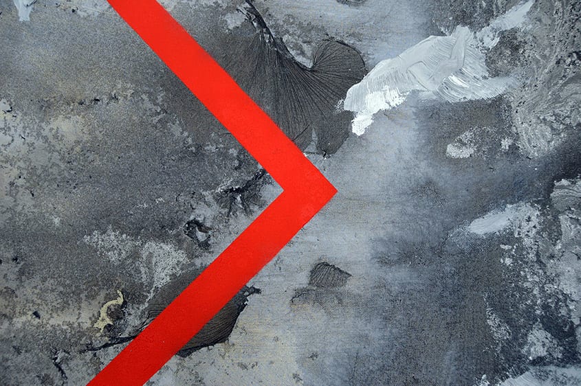 The considered selection of shapes, colours and symbols associated with that of safety signs, are introduced into the work as a reminder of the hazards and dangers our planet faces.