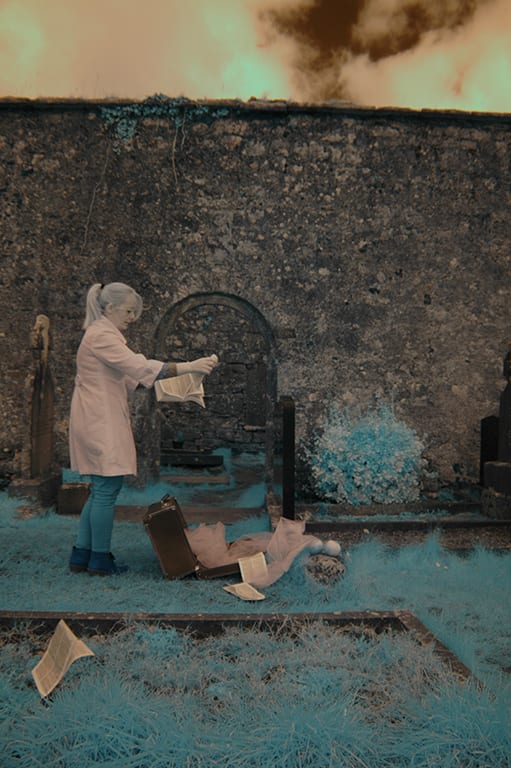 I create conceptually based visual narratives often using rare experimental mediums such as colour infrared film. Primarily because infrared sees beyond what our societies eyes can. This colour infrared 35mm film turns natural green foliage an unnatural red colour, while digital infrared can turn this foliage light blue. Using infrared gives unpredictable results each time with no guaranteed outcome, much like the infertility process.