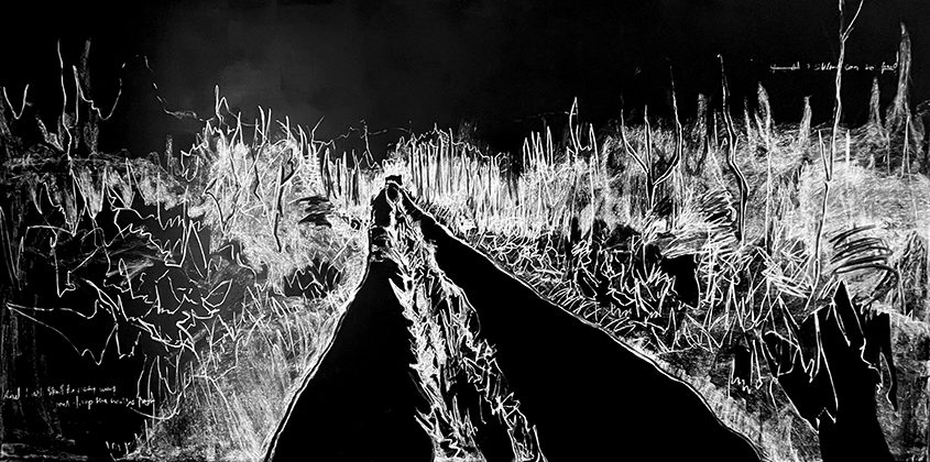 In response to the slow violence caused by corporate influence and growing globalist factors and to the collective ‘cancelled’ future, Eabha aims to identify zones of resistance, by following three lines of enquiry – political, environmental, and somatic. Employing speculative forms of making and guided by the dèrive methods of the Situationists, Eabha has explored Atha na Clocha, Co. Mayo, an old stone cottage on an acre of land, never linked up with water or electricity, and left to grow wild for many years. Having spent much of her childhood on this land which was once surrounded by sprawling bogland and natural Irish woodlands. After almost a decade of not visiting following the loss of her father- the plot of land has grown wild and feral, but the surrounding bog has been turned into a Sitka spruce plantation. Once, these forests were buzzing with nature and life- now, they are stagnant and filled with sickness. This plantation is one example of the slow violence caused by corporate and capitalist motivations and encapsulates the damage. Despite this, Eabha taps into a presence of the unseen, the unknown, the not yet understood in this place. There is a magical resistance in Atha na Clocha, staying wild and alive, a temporary autonomous zone, unbought and untouched by the surrounding plantations, resisting by its mere existence. Through Eabha’s practice, she works to identify the magic that is there. The course of human nature and nature itself has been altered by external corporate powers, however, through time-based, intuitive methods, Eabha aims to identify the elements which defy this.