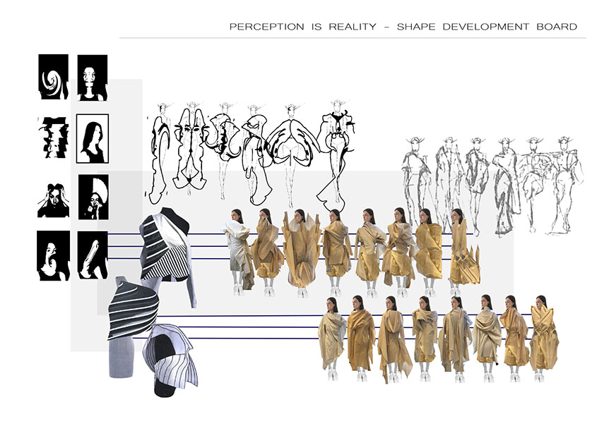 PERCEPTION IS REALITY IS A WOMENSWEAR A/W25 COLLECTION BASED ON HOW INDIVIDUALS PERCEIVE REALITY, AND HOW ILLUSIONS, DISTORTIONS, AND TWISTING OF SUCH REALITY DEPEND ON PERSONAL VIEWPOINT.