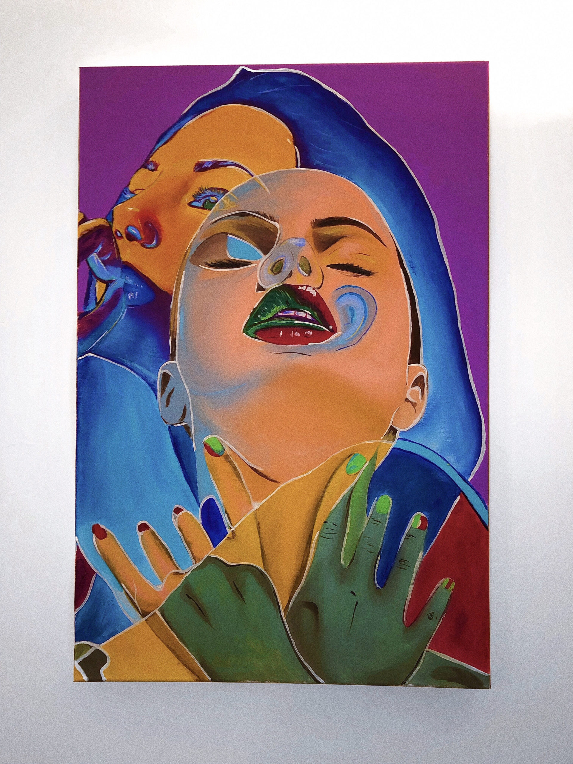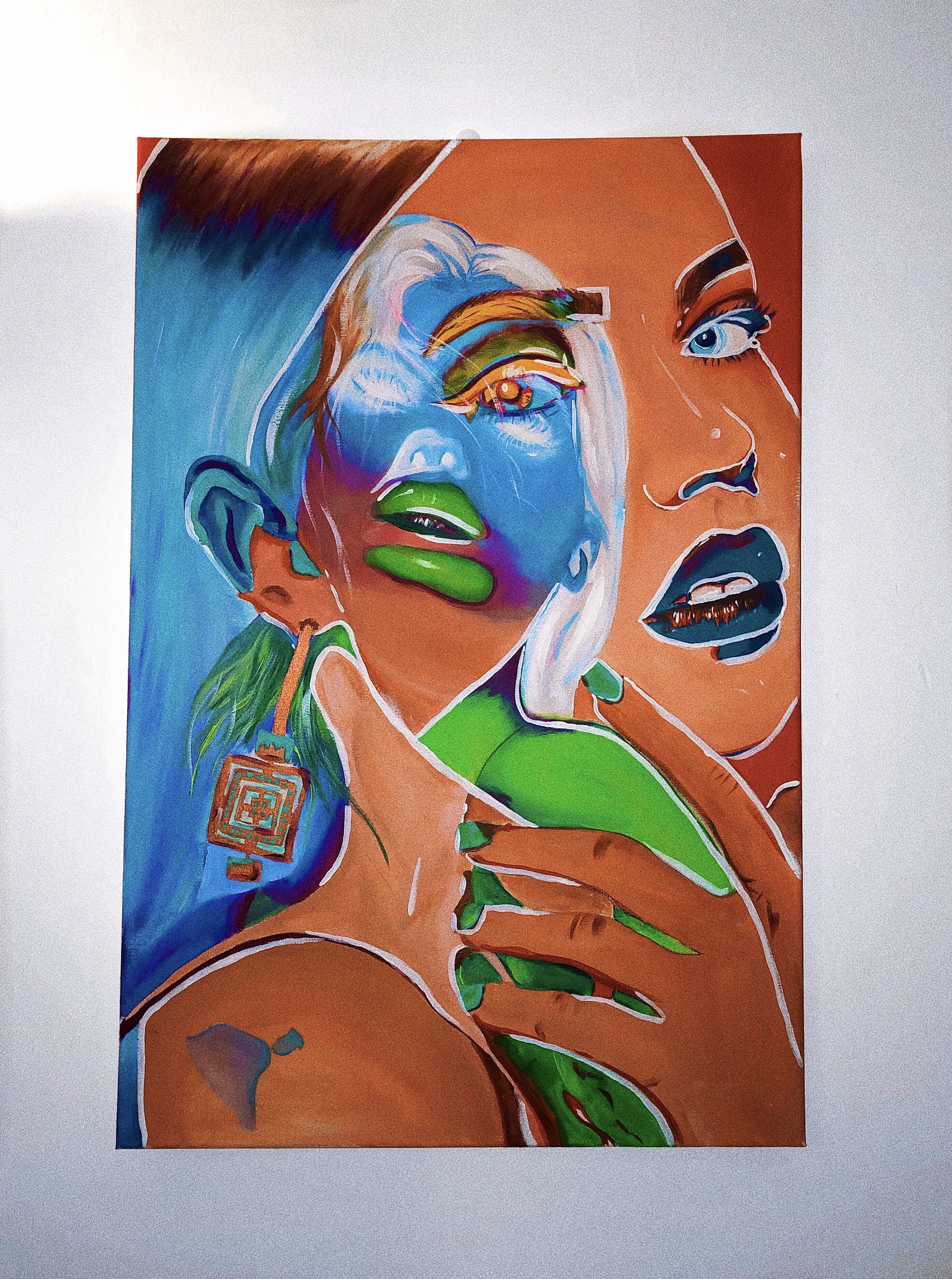 The use of a variety of mediums including spray paint, oil paint, pencil and acrylics helps to craft mystifyingly surreal, rich-coloured paintings of the female form. Layering these images and painting from them in the hope to create something that is truly eye-catching and aesthetic.