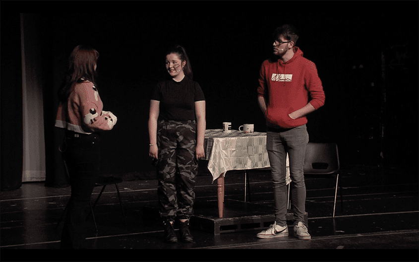 A dramatic play. The play was filmed in the Millennium Theatre on April 18th on a mutlicam 3 camera shoot on JVCs. After Charlie’s father dies, she is faced with multiple different barriers to moving on in her grief and her life. The most difficult being her imaginary childhood friend Flynn, who is unaware how or why she is back in Charlie’s life. As Charlie and Flynn try to navigate their reality, they are also met with real life issues, grief, drug abuse, family, relationships and old friends. Characters are inspirations of real people.