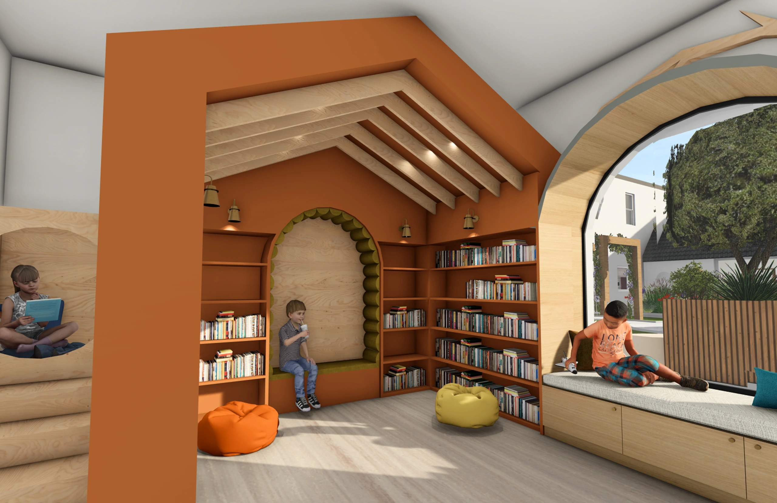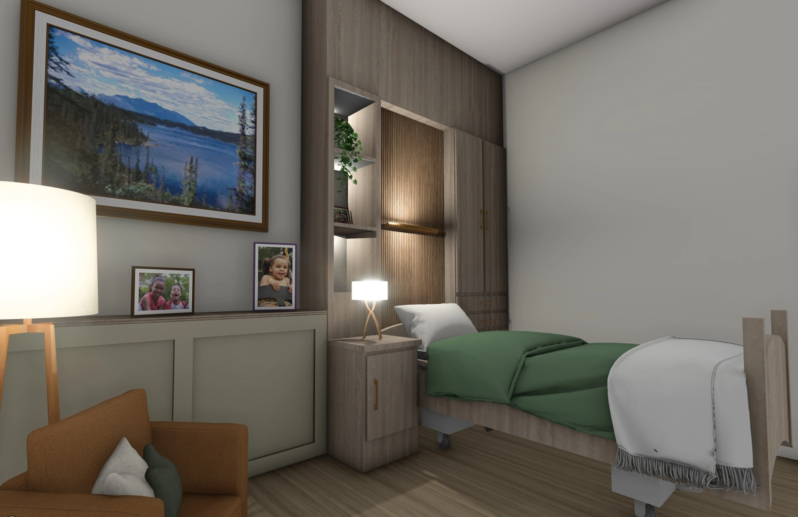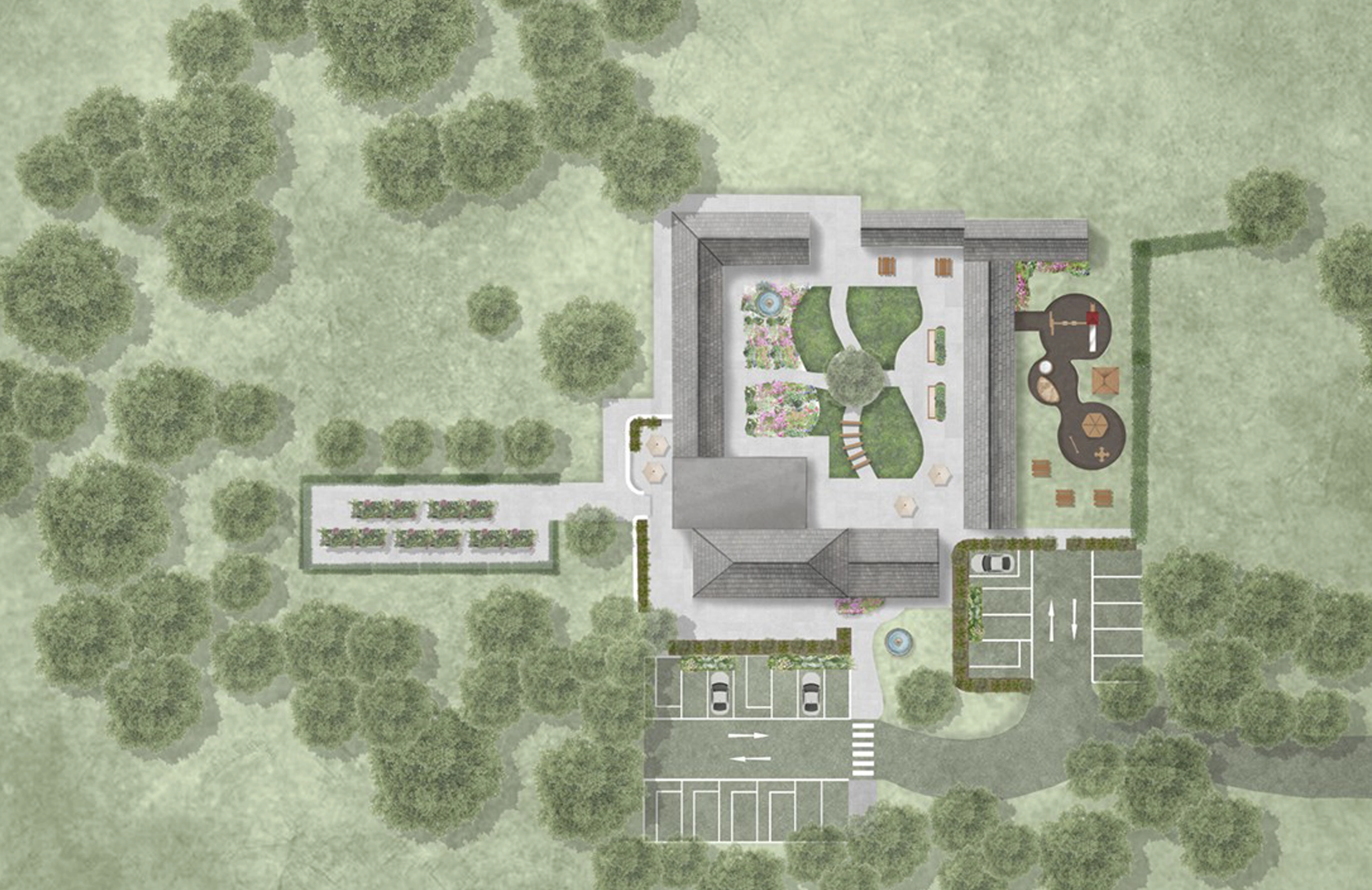 Nestled Oaks is a very personal design project that was inspired by my own experiences visiting nursing homes in Ireland with my grandad. I remember how disheartening it felt to walk into these nursing homes that were sterile, joyless, and lacking any real sense of home. That experience has stayed with me. It then became my driving force behind this project: I wanted to design a nursing home that feels warm, happy, safe, and filled with dignity and care. I had also witnessed how uplifting it was for the residents to interact with young children. This gave me the idea to bring in the integrated Montessori onto the grounds to create opportunities for natural intergenerational moments that could bring joy and meaning to both age groups. My concept came from the oak tree. The oak tree, which represents the older generation that are strong and full of wisdom, while the acorn reflects the younger generation who are full of potential, curiosity, and growth. This symbolic relationship inspired a design that brings both together in one shared, nurturing environment.