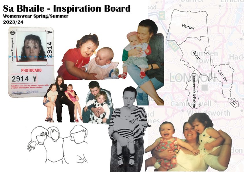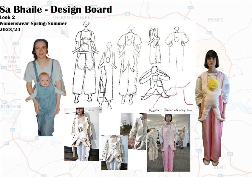 Emily’s graduate collection focuses on her family and tells the story of the relationship between a parent and child, from being dependent on the parent to gaining full independence. Her inspiration for this collection stems from her mother’s time spent living in London in the 1980s and Emily’s time living in London in 2022. The sense of playfulness and freedom of city life was as apparent in the 80s as it was in 2022, and those are the feelings Emily hopes to evoke with this collection.