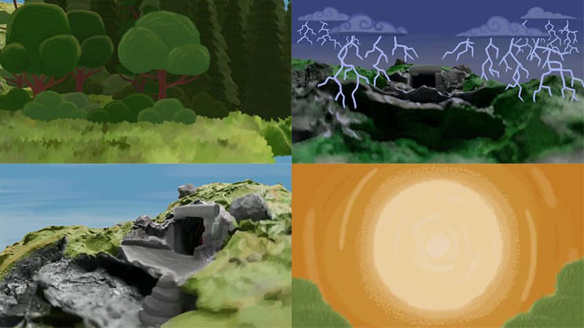This light-hearted short was created using a hybrid approach. The backgrounds are a physical 3D model that represents Ireland. The real hills and fields that form the backdrop of a myriad of Irish myths and legends that inspired this story. The characters are digitally animated, other worldly or ethereal contrasting to the tangible environment.