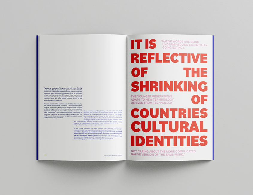 ‘Code-Switch’ is a printed publication that explores the concept of code-switching and its impact on language, culture and society through the influence of technology, trends and social media.