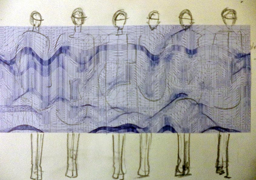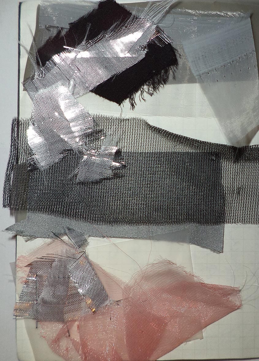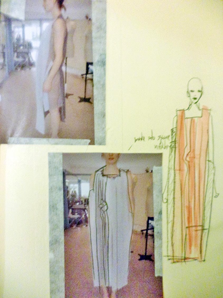 The inspiration for my collection was taken from the drawings of artist Matt Shlian. Shlian’s work is concerned with computer malfunctions and the glitching that occurs through errors in computer code. The concept behind the collection was to create garments that looked as though they could have been designed by a malfunctioning computer. The collection is constructed in a combination of plastics organzas and satins. Each glitch was achieved through a process of pleating horizontally into vertical pleats with each piece having one specific ‘glitch’ or ‘error’.
