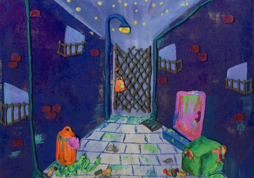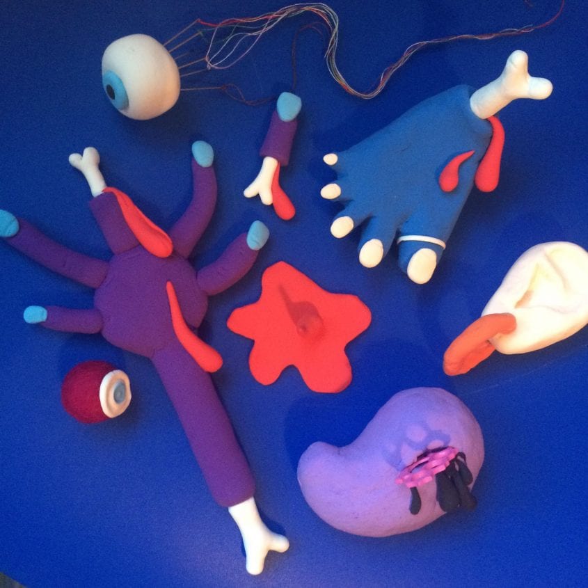 My work is based on the re-appropriation of my work as a child. I have always been interested in illustrative, narrative art. I am creating a dynamic body of work using various studio methodologies while combining text and image on diverse surfaces. Based on childhood experiences, the idea of nostalgia and a fair amount of absolute nonsense, I have created my own whimsical, kaleidoscopic world. I have an awareness and appreciation of how an acquitted child’s mind works in relation to art and hope to reflect that in my practice. ‘Pox, Pox Eile, a haon, a dó’ is primarily a satirical project revolved around the haphazardness of a child’s means of creating. Using a number of formats, my stimulus has shifted towards creating a duo of tongue-in-cheek, gruesome sculpture pieces that characterise the pandemonium surrounding reclaimed toys.