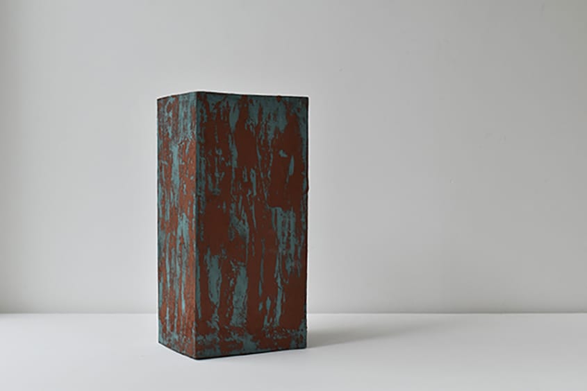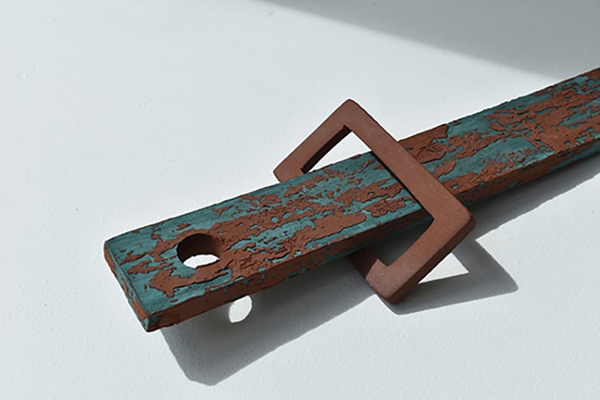 The starting point for my pieces was his scrap pile – his source of materials to fix and construct things around the farm. I extracted simple objects and shapes, repurposing them into my own contemporary structures, exploring seemingly random arrangements to reference the form and surfaces of the farm adding subtle hints of his quirky joinings and peeling layers representing years of ‘sprucing up’.