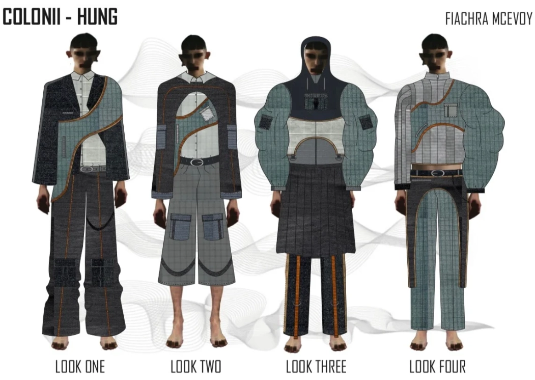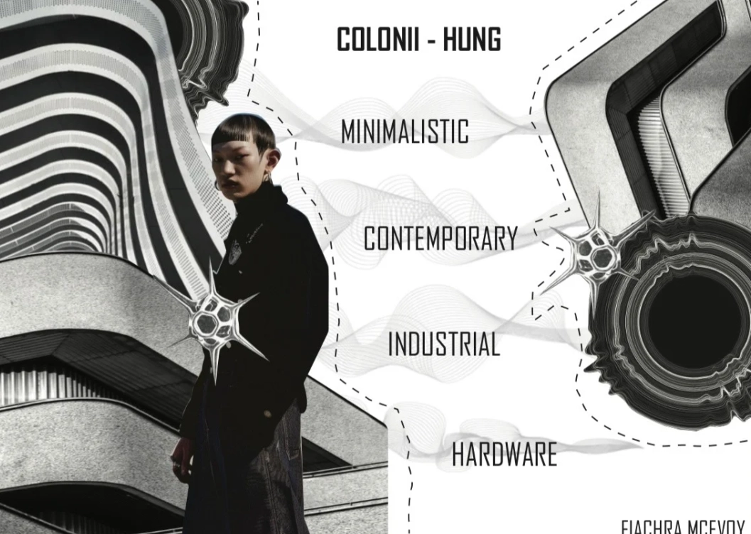 Colonii’s involvement provided a conceptual and technological foundation—Hung served not only as inspiration but also as a narrative framework that helped guide design decisions around silhouette, material, and styling. The project reflects a growing interest in digital-physical hybridity in fashion, and it was an opportunity to push boundaries between storytelling, technology, and apparel design.