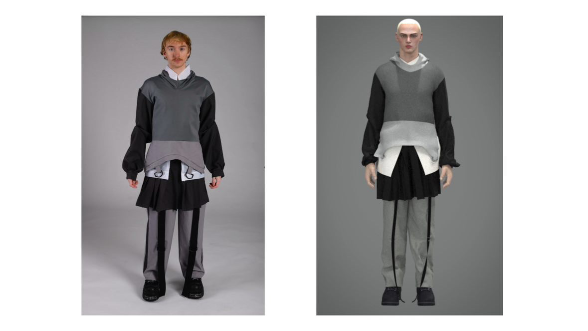 This project demonstrates how fashion can respond to virtual identities and speculative futures, while still remaining grounded in craftsmanship and wearability.